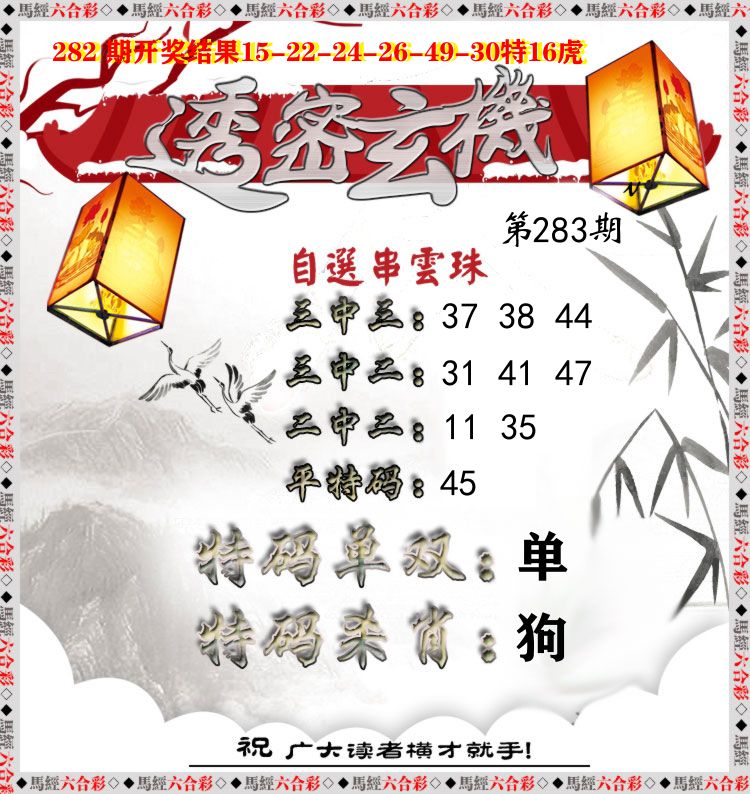 283期:♠单双中特♠料=== 【 单 】=== 开:??准