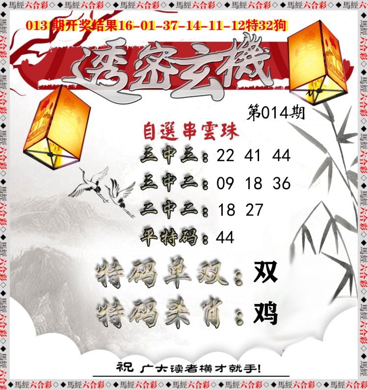 013期:♠单双中特♠料=== 【 双 】=== 开:32准